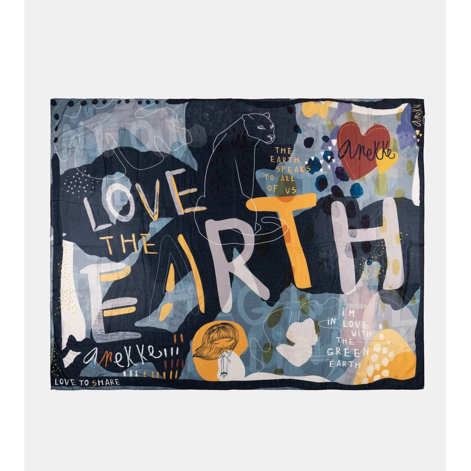 its original design combines a navy blue base with prints inspired by nature and the amazon, as well as phrases of love for the planet, in white and yellow tones.