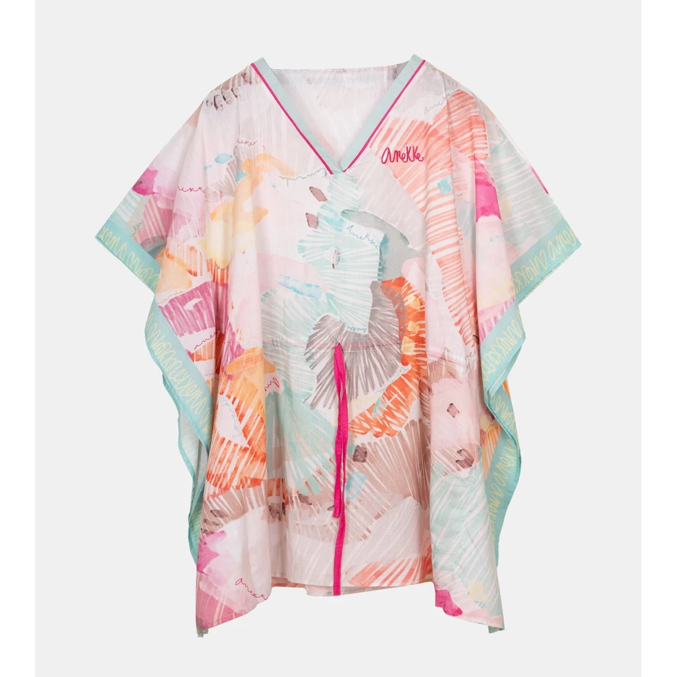 Šis Sieviešu Kaftāns Ir Lieliski Piemērots Gan Pludmales Apģērbam, Gan Ikdienišķam, Oriģinālam Apģērbam, Pateicoties Tā Daudzkrāsainajam Apdrukai. Tas Ir Viena Izmēra Modelis Ar V Veida Kakla Izgriezumu Un īsām Piedurknēm, Ar Oriģinālu Platu Piegriezumu Un Plūstošu Sajūtu, Regulējams Jostasvietā, Lai Nodrošinātu Slaidu Piegulšanu. Audums Ir Vēss Un Viegls, Lieliski Piemērots Siltākajām Dienām, īpaši Pludmalē Vai Vasaras Vakaros.