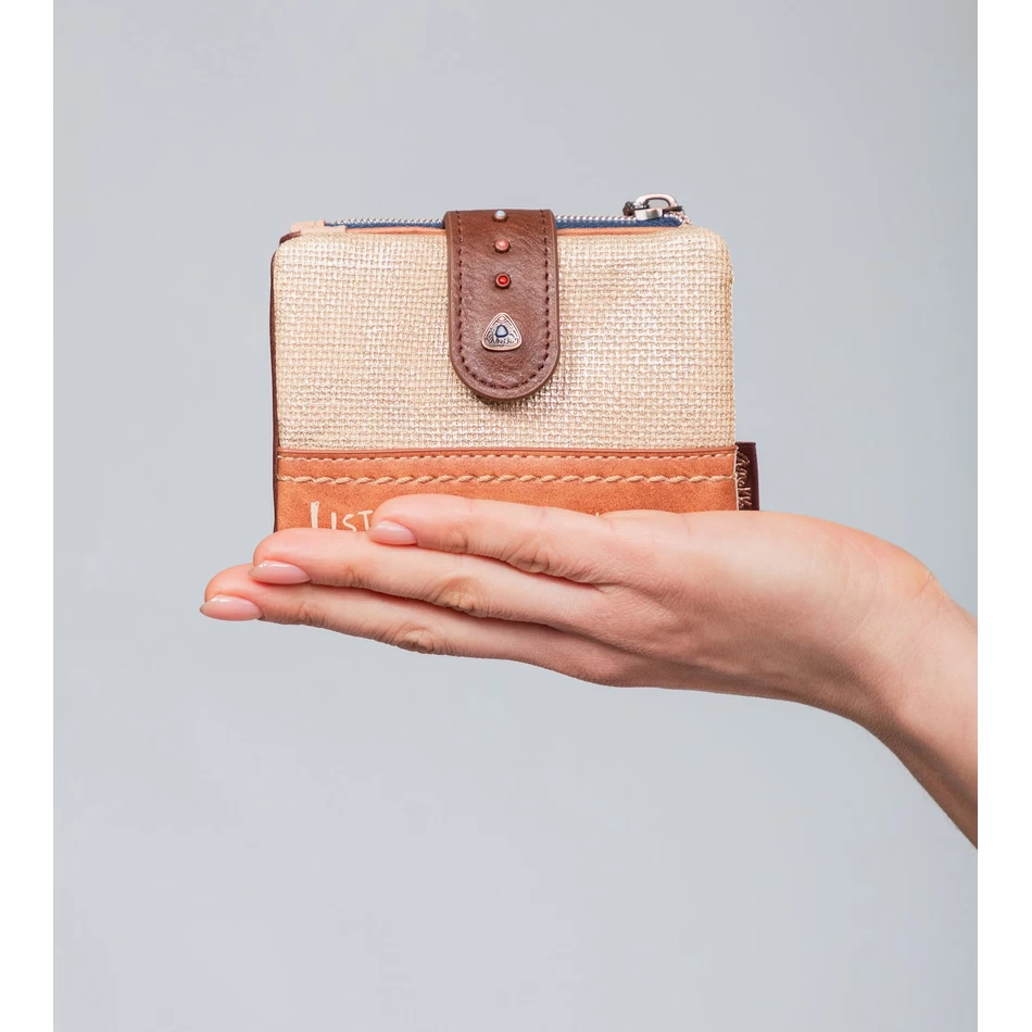 то је новчаник мале величине. материјал од којег је направљен је флексибилан. Овај модел има рфид заштиту: иновативни систем заштите који штити наше картице од неовлашћених плаћања, крађе информација и сметњи. овај модел комбинује принт колекције, у којој су заступљене различите групе староседелаца, са деловима у сировом тону, украшеним везом и штампом у црвенкастим тоновима.